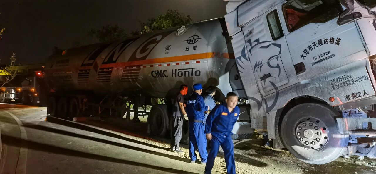 2025年9月6日,一輛裝載液化氣的重型半掛牽引車在土崖塔鄉(xiāng)寨上村附近路段發(fā)生側(cè)翻,現(xiàn)場情況緊急?h應(yīng)急管理局救援大隊、縣公安局、縣消防救援大隊、保德守押中隊?wèi)?yīng)急救援隊等多部門迅速響應(yīng),第一時間趕赴現(xiàn)場協(xié)同開展應(yīng)急救援工作,全力守護(hù)群眾生命財產(chǎn)安全。經(jīng)現(xiàn)場查看,氣罐車罐體出現(xiàn)輕微變形,并伴隨機(jī)油等混合液體流出,液化氣具有易燃易爆特性,事故地點(diǎn)臨近村落,嚴(yán)重威脅了人民群眾生命財產(chǎn)安全和過境車輛安全交通安全。